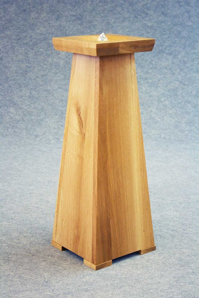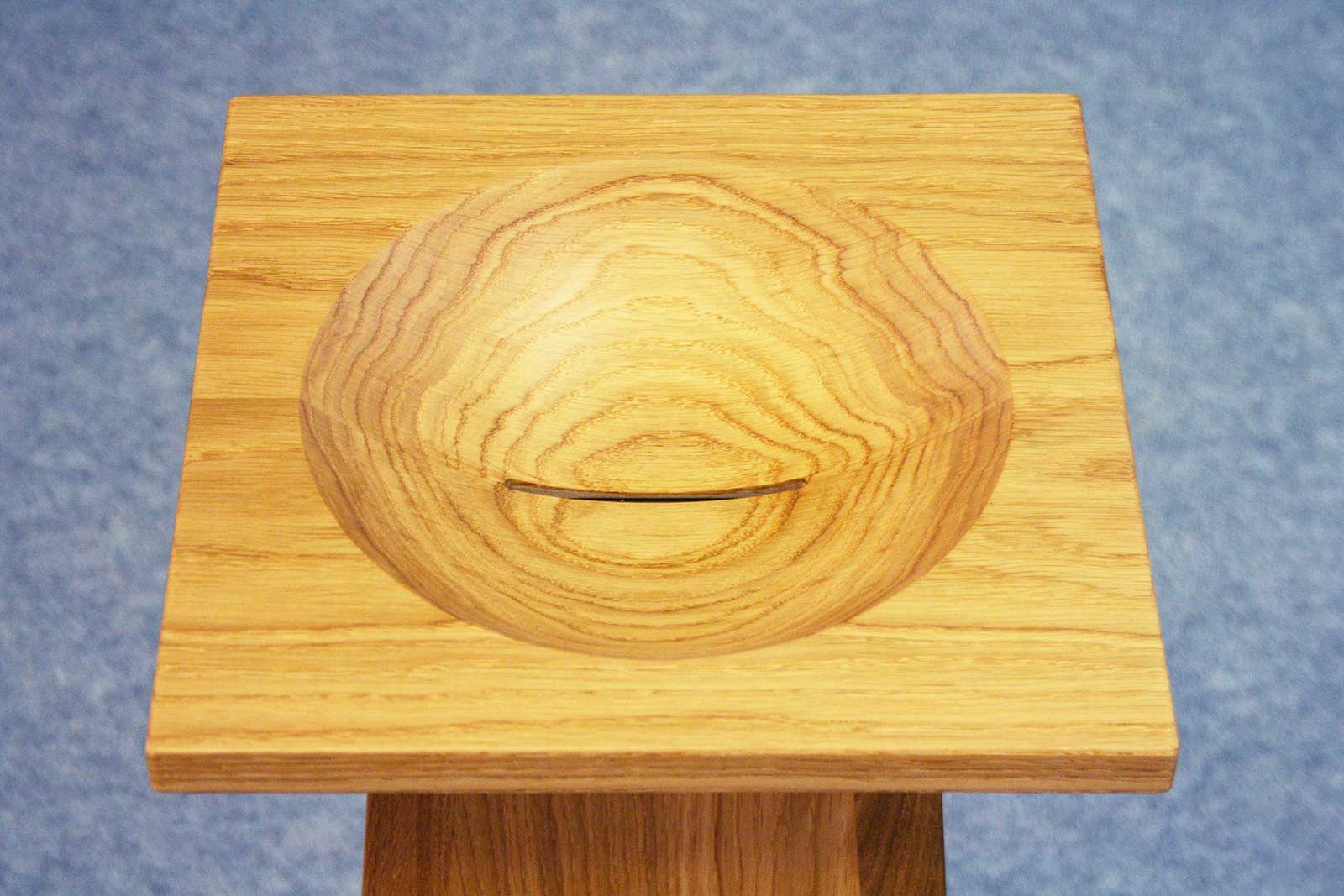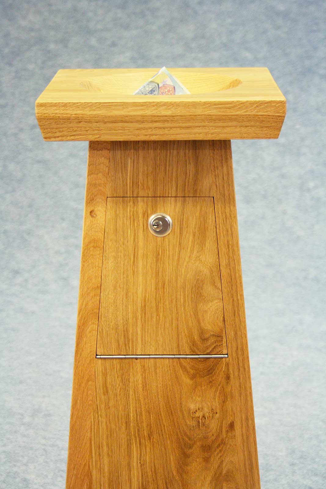 Der Opferkasten wurde aus dicken Eichenholz hergestellt. Sorgfältig und präzise erfolgte die Fertigung dieses besonderen Objektes.