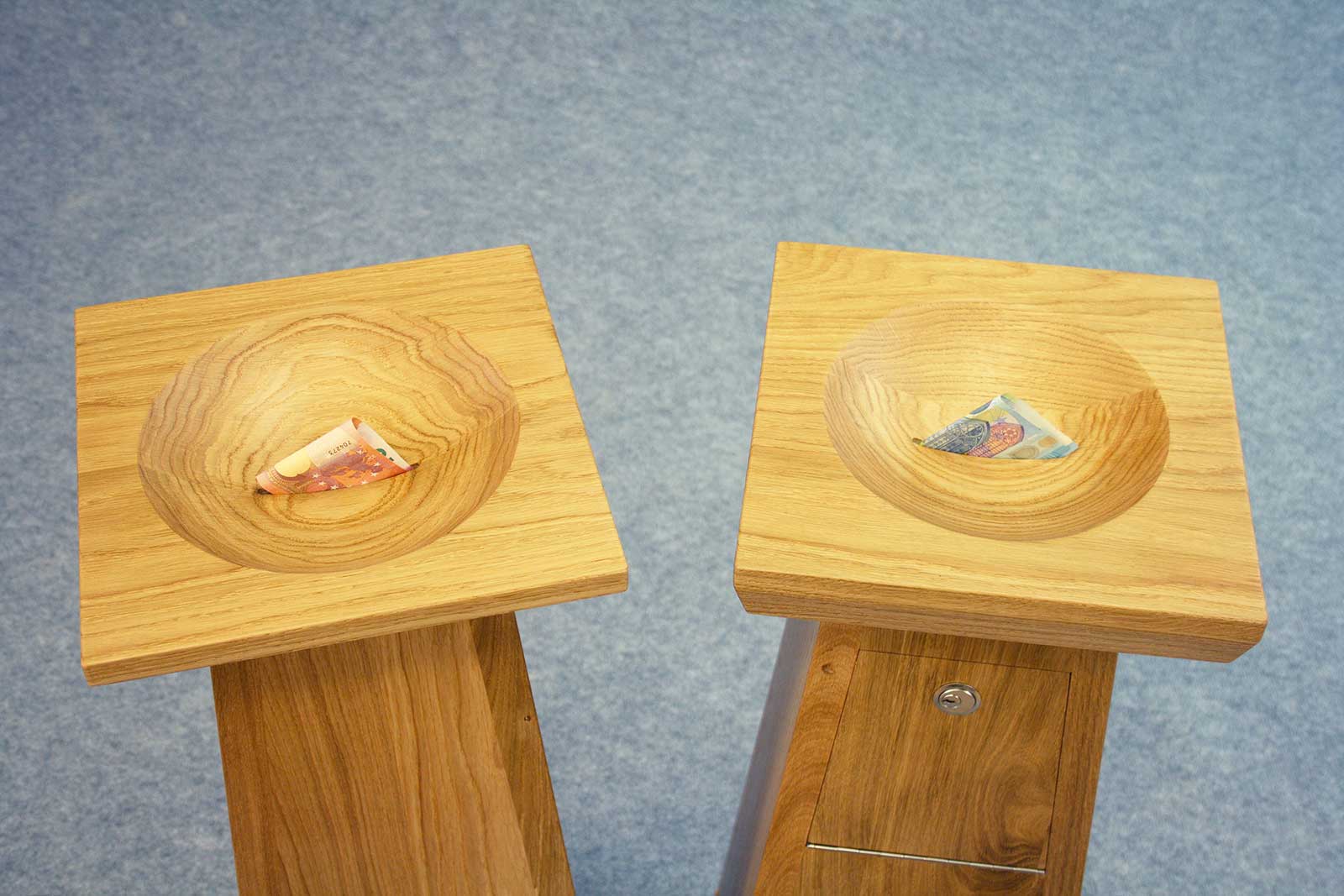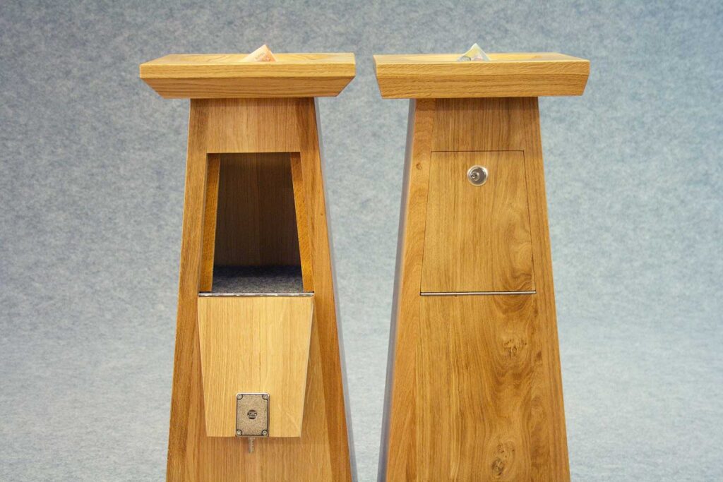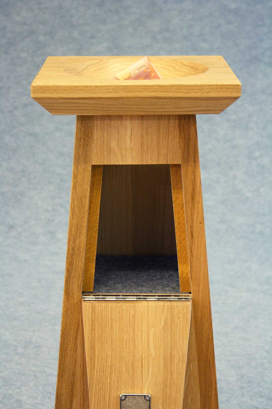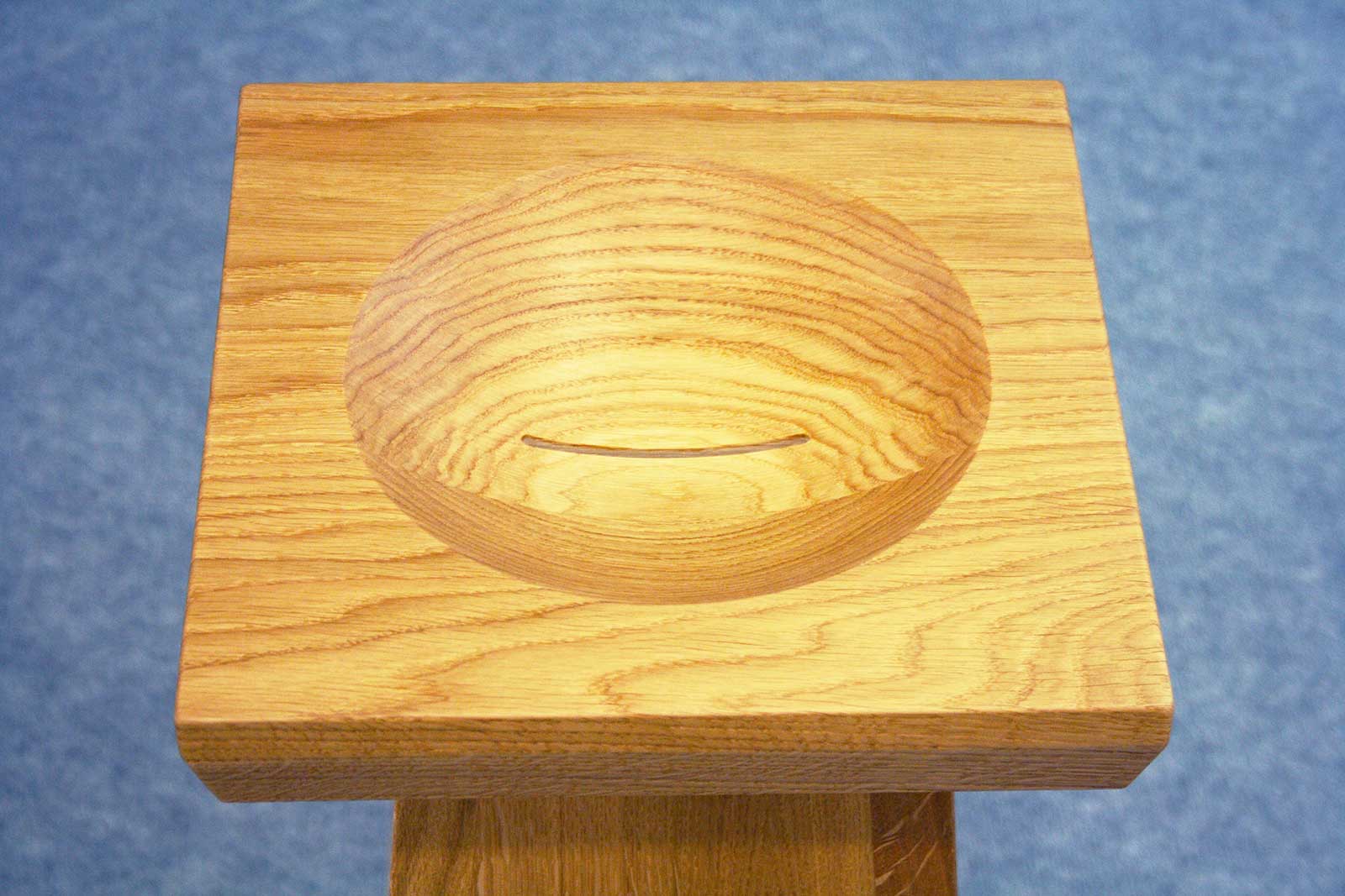 Der Opferkasten wurde aus dicken Eichenholz hergestellt. Sorgfältig und präzise erfolgte die Fertigung dieses besonderen Objektes.