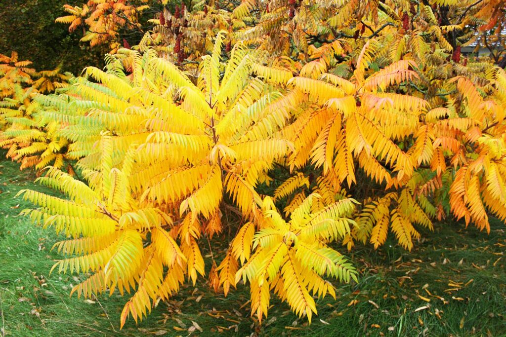 Der Essigbaum Rhus typhina gehört in die Familie der Sumachgewächse (Anacardiaceae). Er wird auch Kolben-Sumach genannt. Ursprünglich kommt dieser Baum aus dem Osten Nordamerikas. Im 17. Jahrhundert wurde er nach Europa gebracht.