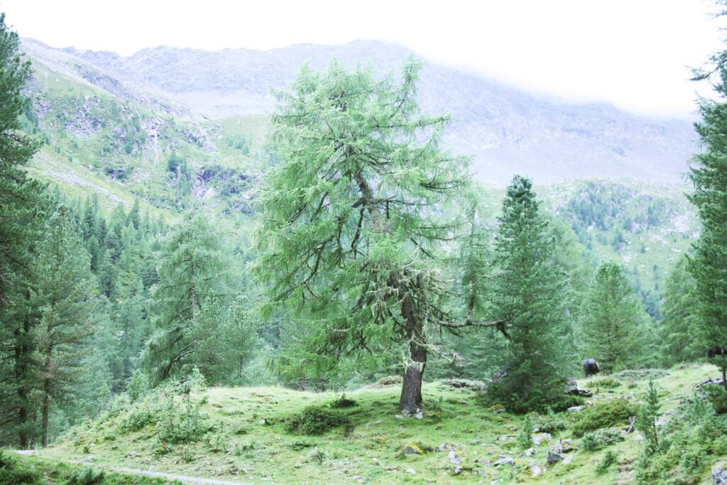Die Lärchen entwickeln eine Pfahlwurzel und mit dem Alter ein herzförmiges Wurzelsystem, was in Felsspalten bis zu fünf Meter vordringen kann.