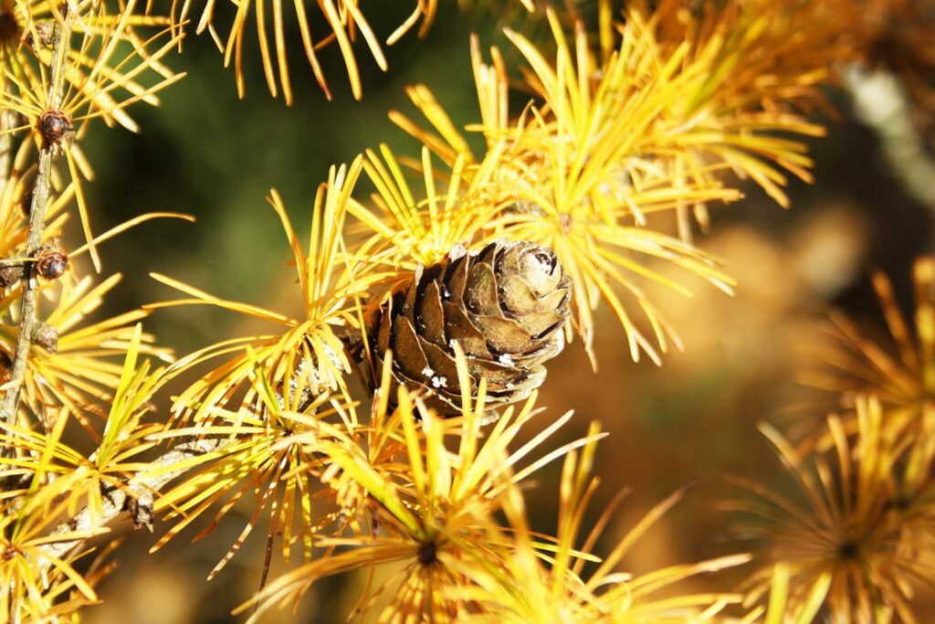Der Nadelabwurf bringt der Lärche im Winter Vorteile. Extreme Kälte (bis minus 40 Grad) und Trockenheit übersteht sie so besser. Vorher werden wichtige Nährstoffe aus den Nadeln entzogen, was zu der schönen, goldgelben Herbstfärbung führt.